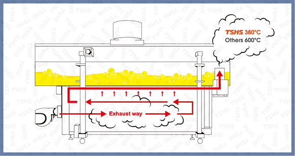 The Fryin Series Oil Fryer of TsungHsing Food Machinery has the exclusive invention design "2 highs and 3 savings". 2 Highs: High heat recovery rate and high heat exchange rate. High heat recovery rate: Tsung Hsing does not ignore any Waste of energy, and can effectively recover the exhaust heat. The effective heat recovery rate is up to 20%. High heat exchange rate: The unique heat conduction design of the" Fryin" series fryer can effectively enhance the heat exchange efficiency The exhaust temperature of the" Fryin" series fryer is about 400 degrees. Compared to other brands Whose exhaust temperatures are over 600 degrees, the" Fryin" series fryer can reduce the temperature of the exhaust emissions by about 200°C, which proves that the heat exchange efficiency is effectively improved.