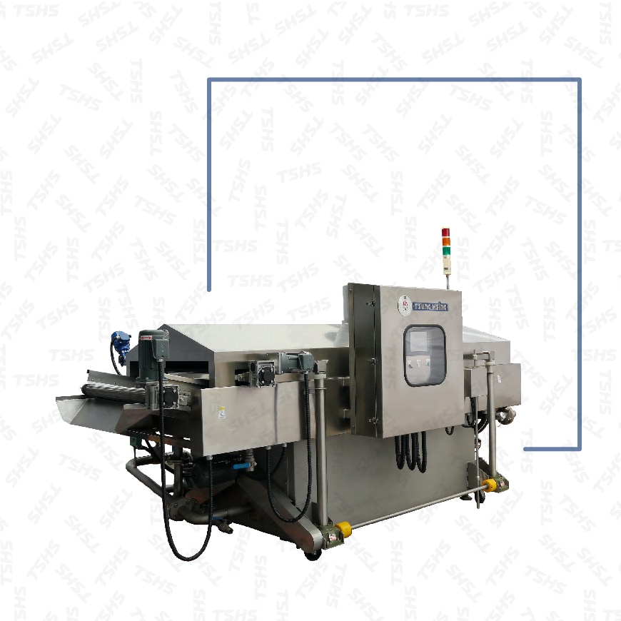 The automatic continuous fryer is made of stainless steel according to the requirements of food hygiene regulations to ensure hygiene and improve equipment durability. Cleaning after use is the most troublesome thing to a continuous fryer, which often requires people to use more than 2 hours to clean the equipment. In view of the customer's experience and feedback, we have added the CIP automatic cleaning system, which can reduce the time for manual cleaning, and has a automatic lifting hood make it easy to clean the dead corners of the wall during cleaning, making maintenance more convenient. The hood can also prevent the quality of the product from being affected by the falling of contaminated materials during the production process. The continuous fryer of TsungHsing Food Machinery uses a multimedia touchscreen to integrate the instantaneous current and voltage monitoring during various productions. The curve analysis analyzes various values, including the conveyor current display and curve, pump current display, curve and voltage display curves. The touchscreen can also check the abnormal alarm history records to understand the device usage. When the buzzer sounds, the touchscreen will show the cause of the abnormality and we can know how to troubleshoot from it. The automatic continuous fryer connection network of TsungHsing Food Machinery provides remote service, which can instantly monitor, modify, repair or update the system, repair software and other services, eliminating the time to wait for the original engineering staff to overhaul.