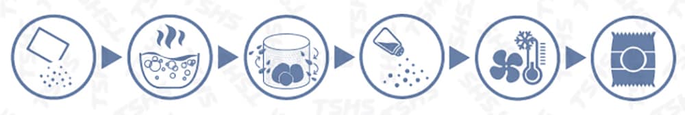 Feeding→ frying→ de-oiling→ seasoning→ cooling→ packaging